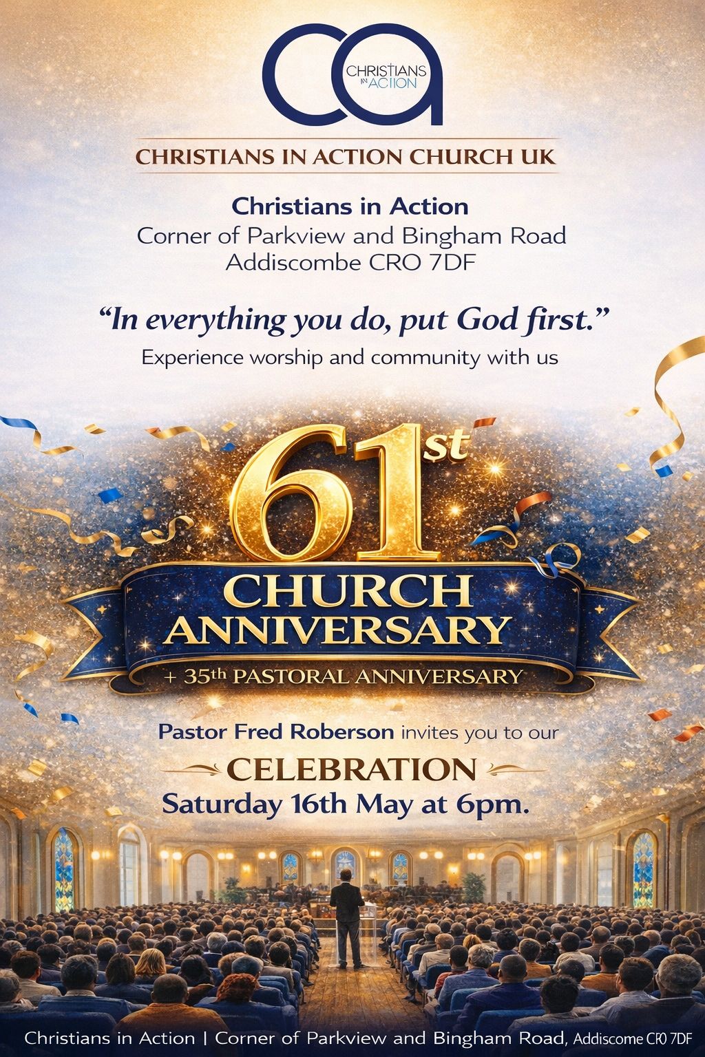 β¨ Join us as we celebrate a remarkable milestoneβ61 years of Christians in Action Church UK and 35 years of